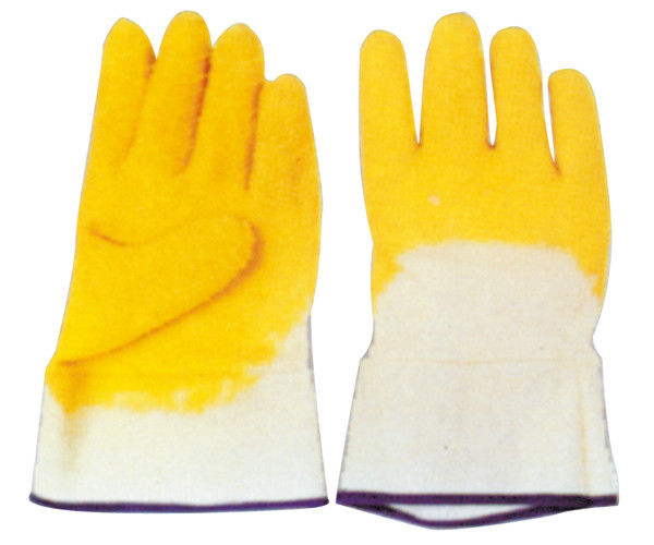 jersey interlock lining open back safety cuff yellow waved latex crinkle half coated safety gloves latex coated work gloves